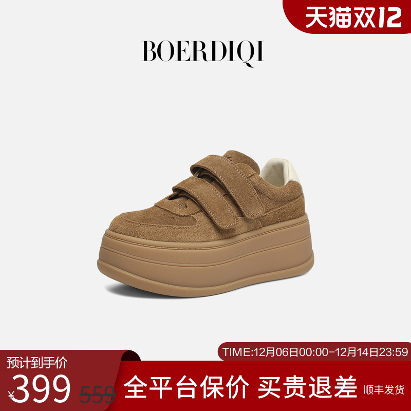 波尔谛奇厚底增高绒面休闲鞋女2025秋季新款复古百搭真皮舒适板鞋
