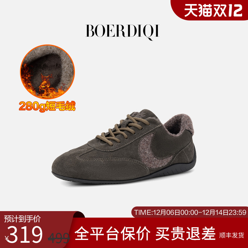 波尔谛奇复古加绒保暖德训鞋女2025冬季新款棉鞋绒面运动休闲鞋子