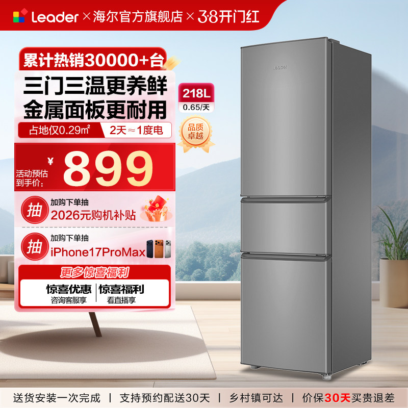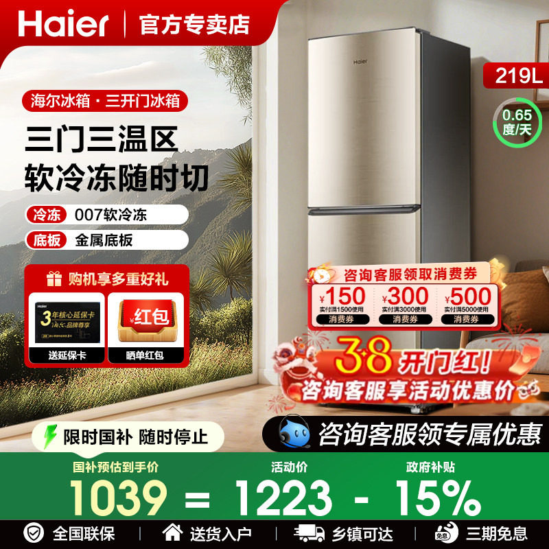 海尔电冰箱三门219L升软冷冻直冷微霜家用小型节能多门官方旗舰店