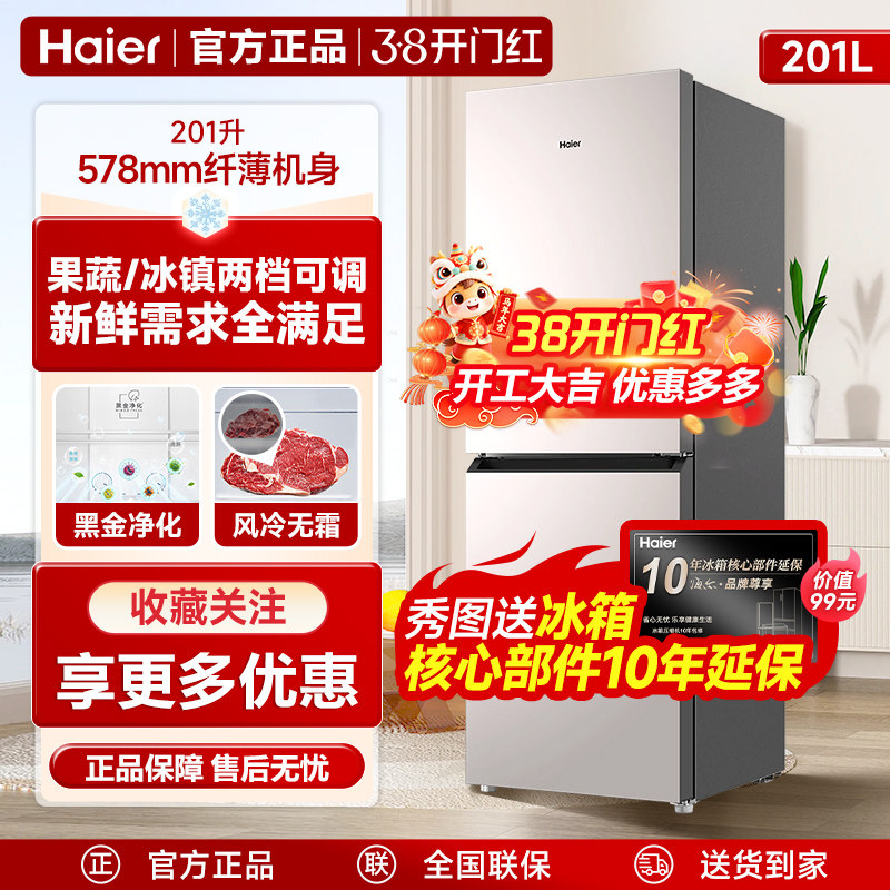 新款海尔201升冰箱两门家用宿舍官方三门小型二门123升/180