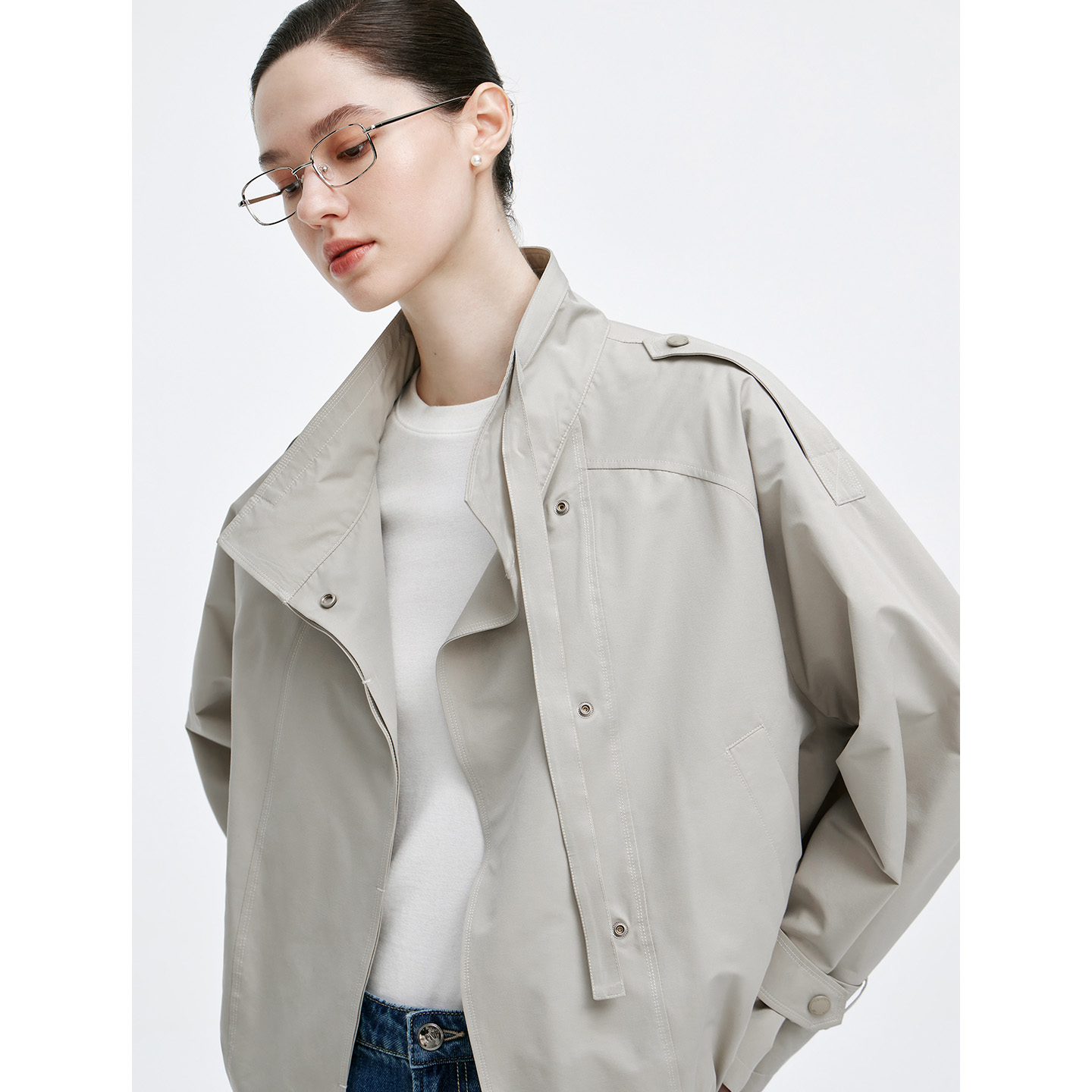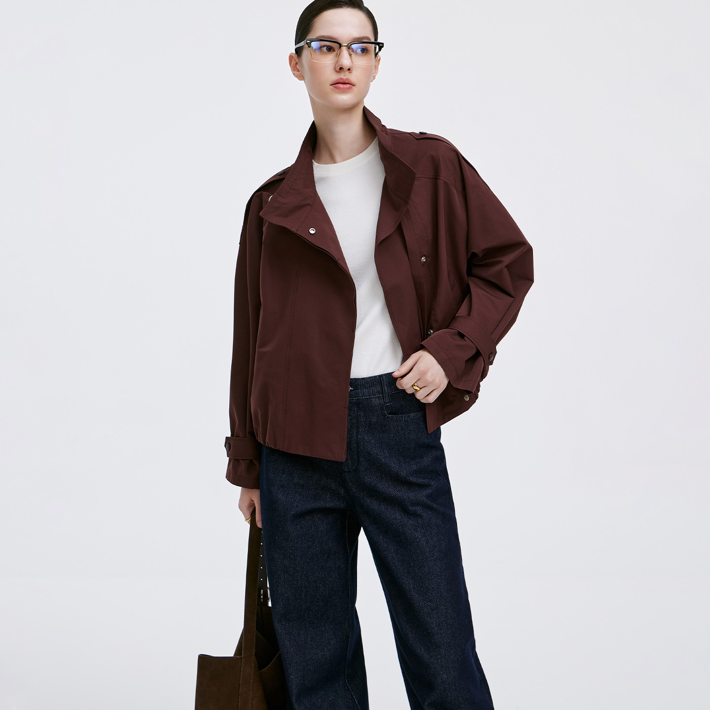 枫竺英伦风气质立领纯色风衣女士2025秋季高级感休闲出游短款外套