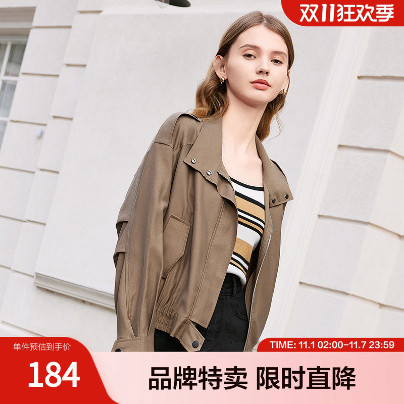 伦敦雾女士秋季风衣款休闲翻驳领单排修身显瘦短款时尚英伦风外套