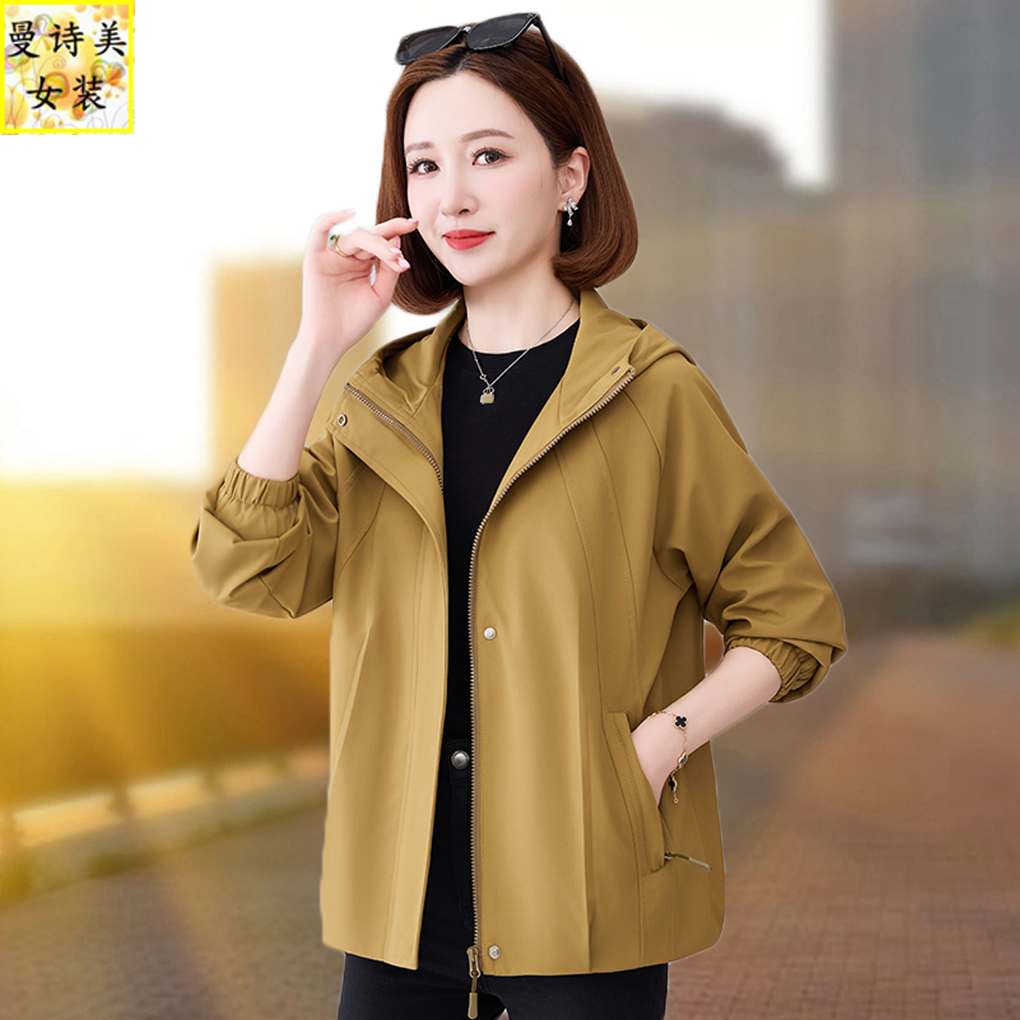 短款风衣外套女款2025春秋新款中年妈妈洋气秋装宽松休闲连帽夹克