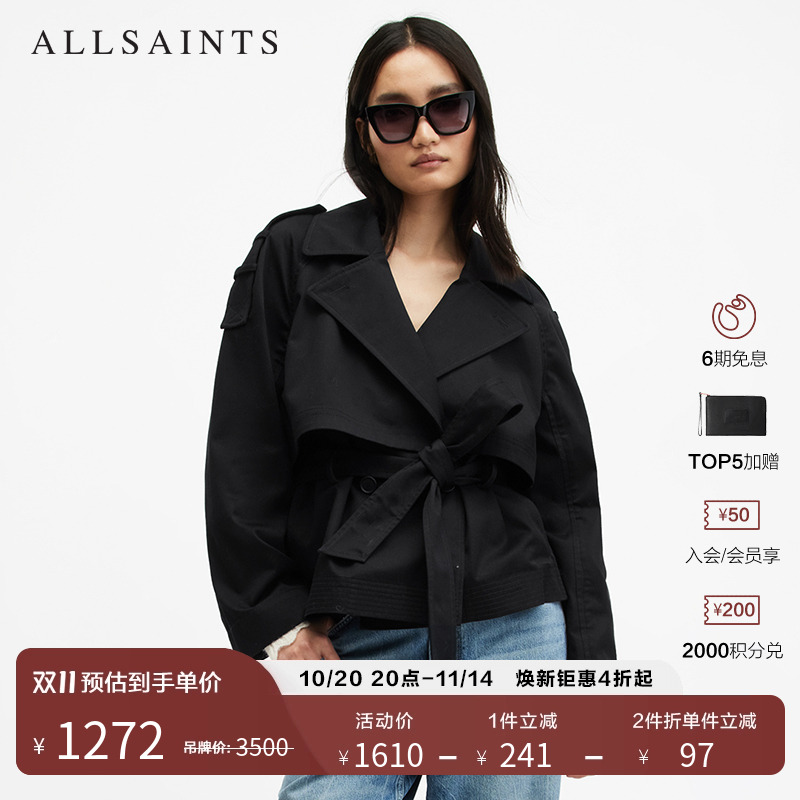 ALLSAINTS女士潮流短款风衣外套休闲叠搭秋冬季女装W036OA