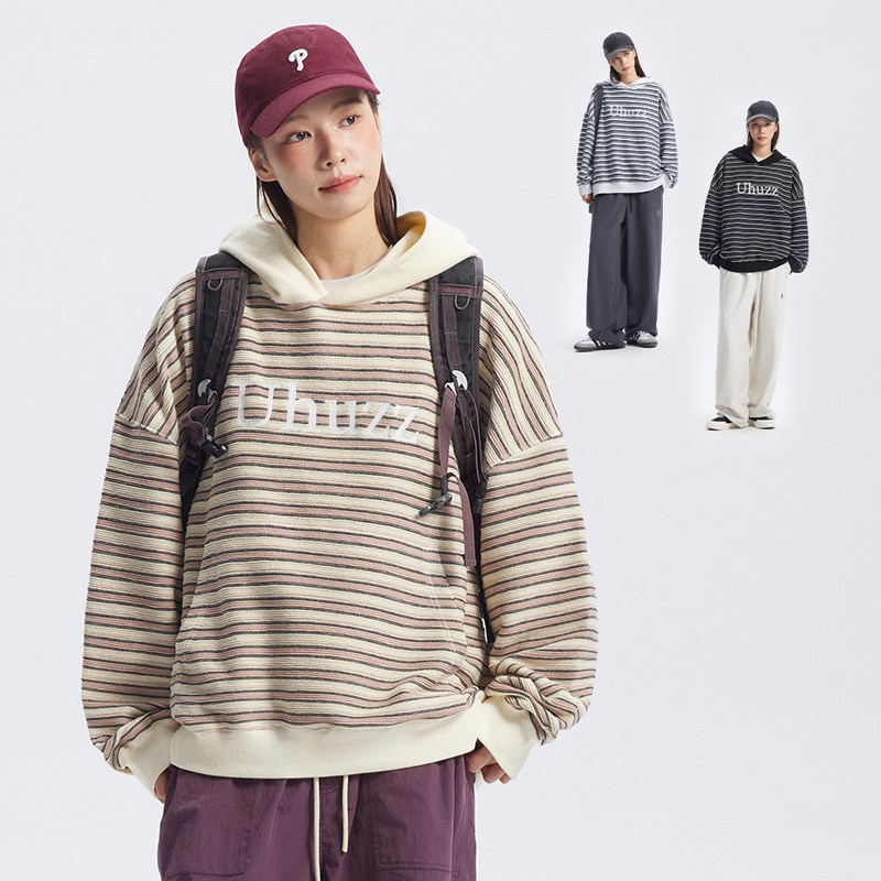 宽松条纹连帽卫衣女相关商品