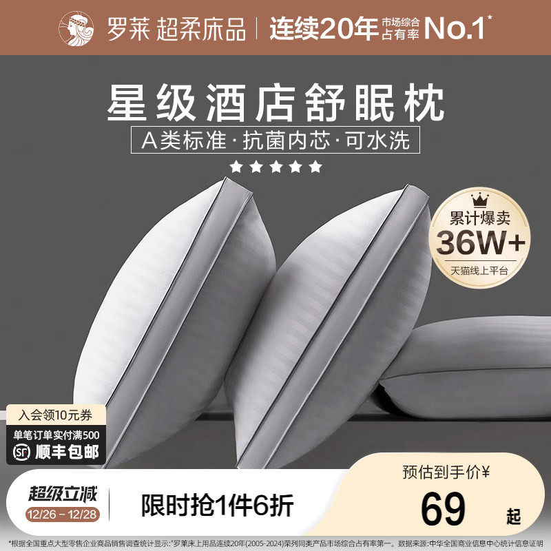 罗莱家纺枕头枕芯单人学生用双感拉伸分区护颈枕牵引睡眠枕单只装