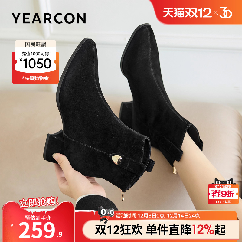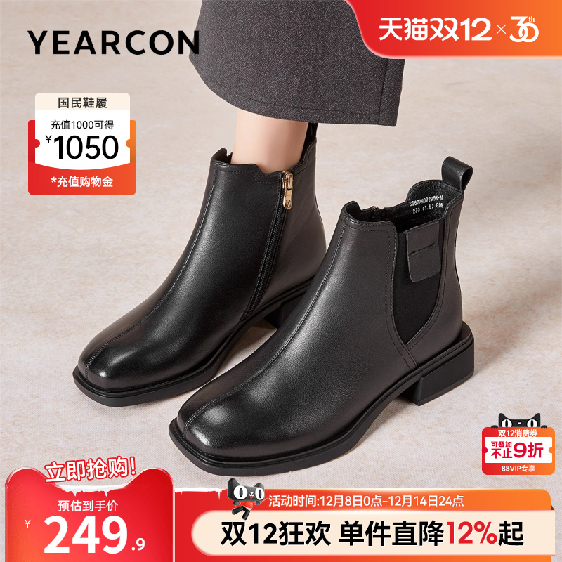 意尔康女鞋秋冬休闲短靴切尔西靴粗跟单靴气质英伦显瘦复古及踝靴