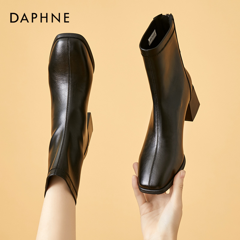 达芙妮法式小短靴女2025新款秋冬加绒粗跟及踝靴小个子高跟瘦瘦靴