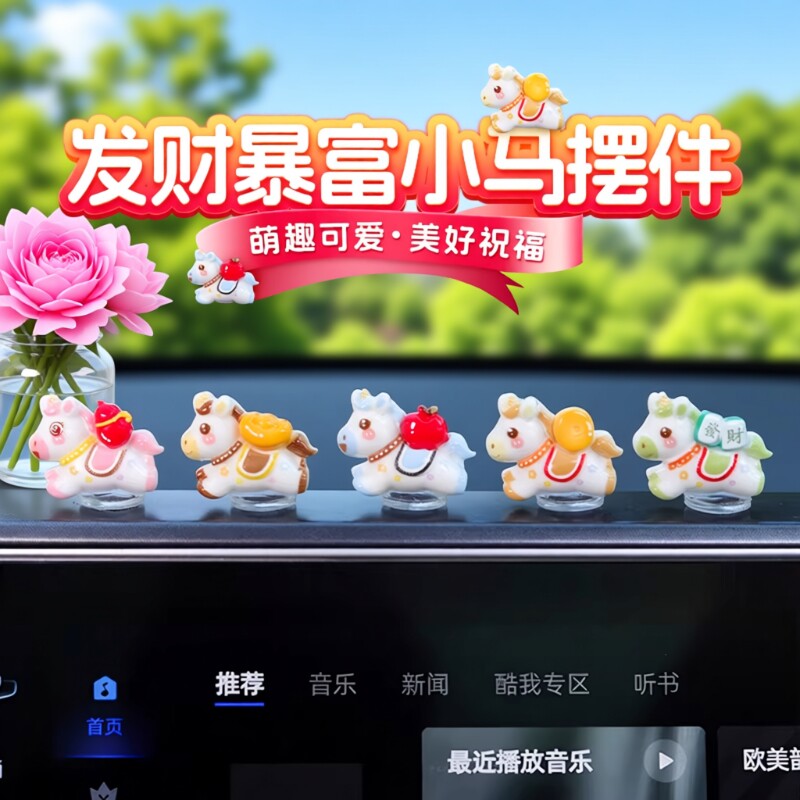 2026新款车载马年生肖小摆件发财暴富小马汽车内中控台装饰品