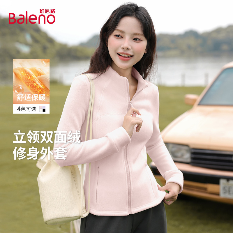 班尼路粉色摇粒绒冲锋衣内胆2025秋冬季新款加绒卫衣外套女上衣H