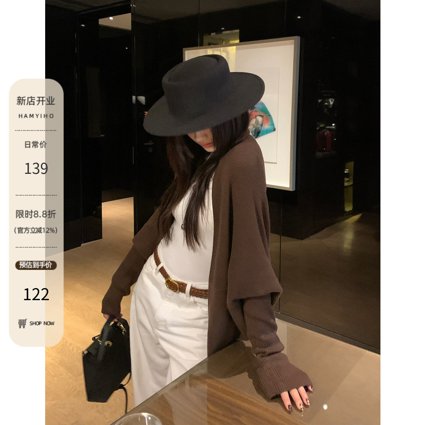 - 黑色短款针织衫女开衫