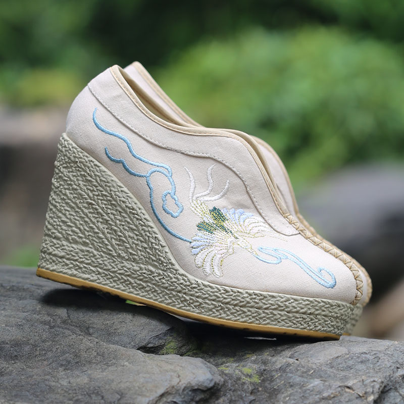 汉服鞋子老北京布鞋女内增高古风绣花鞋女坡跟古装鞋子女民族风鞋