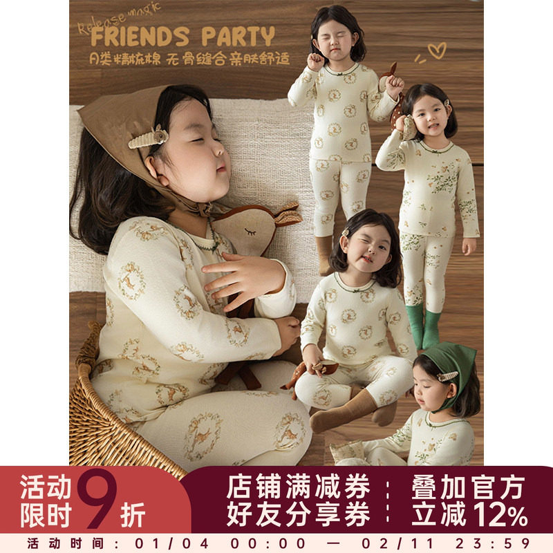 幼悠女童小动物家居服套装冬季甜美可爱撞色曲牙花边领宽松睡衣潮