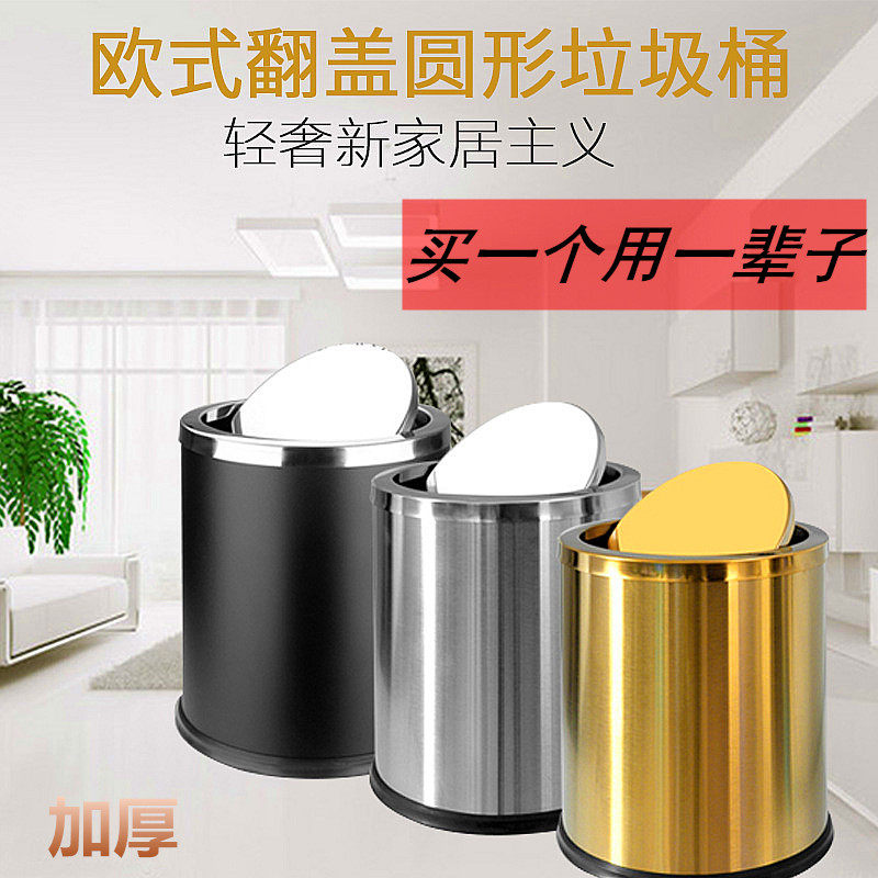 不锈钢垃圾筒皮纹烤漆垃圾桶 酒店圆形翻盖垃圾桶酒店客房垃圾桶