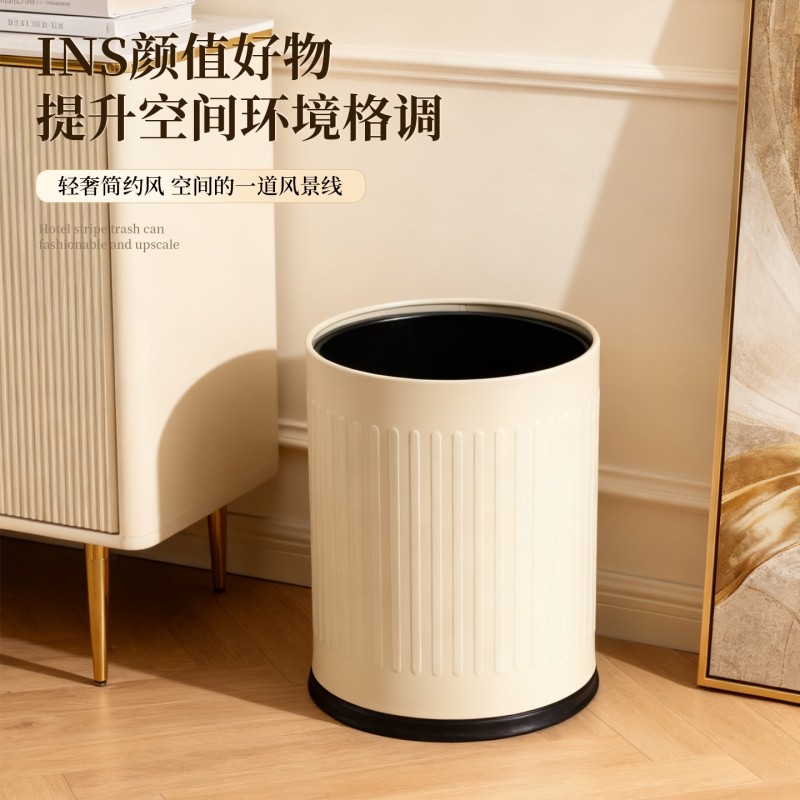 酒店客房垃圾桶铁烤漆大容量奶油风罗马纹阻燃纸篓高颜值民宿商用