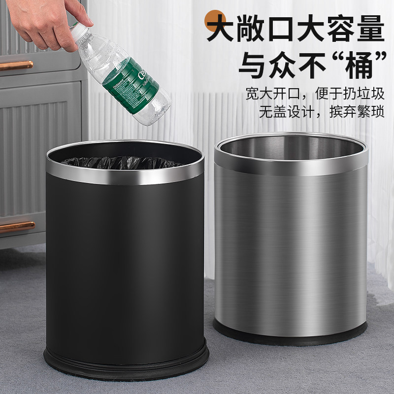 不锈钢酒店客房垃圾桶家用双层单层圆形阻燃垃圾桶无盖ktv卫生间