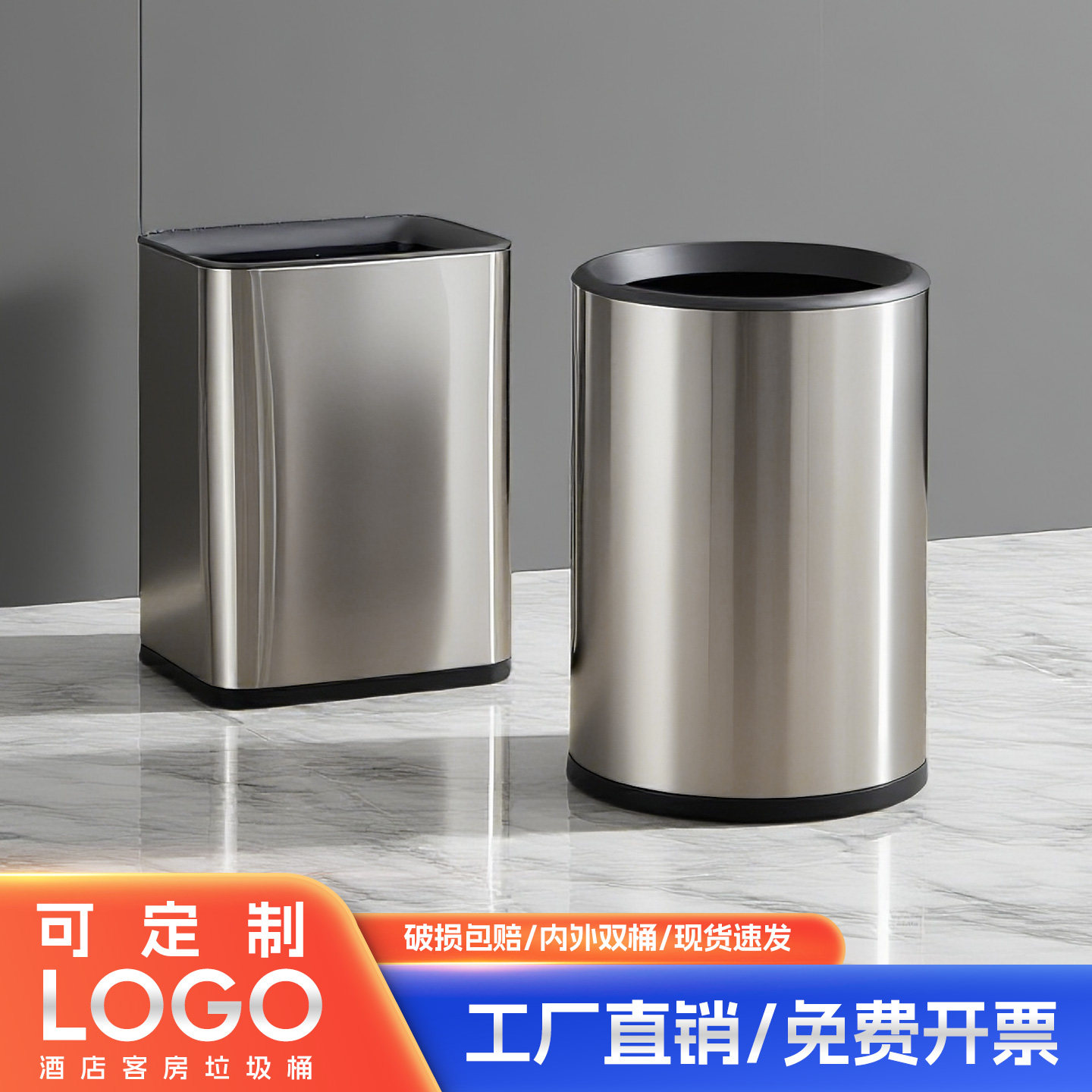 商用不锈钢垃圾桶家用酒店办公室厨房卫生间客房双层无盖定制logo
