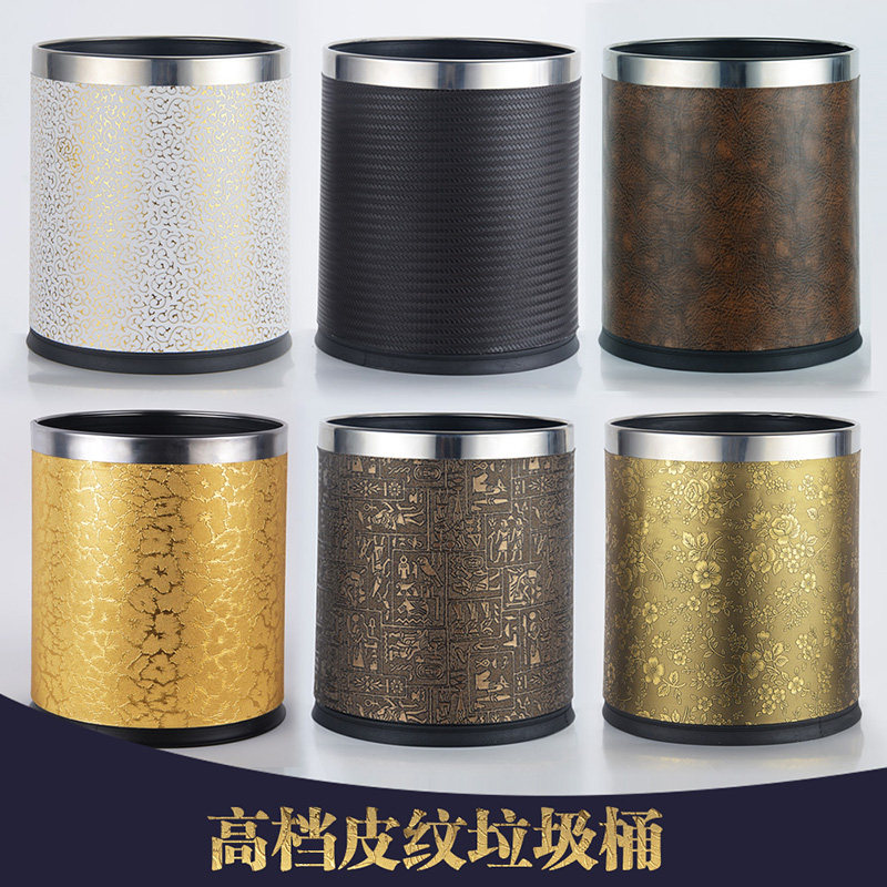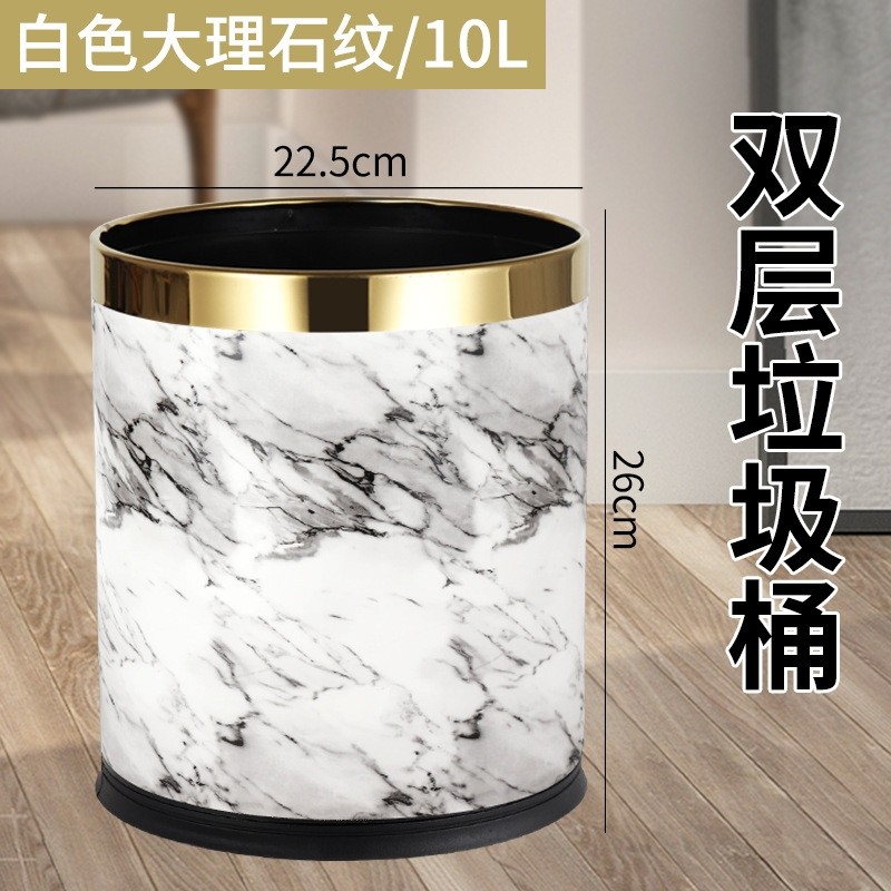 酒店客房商用垃圾桶家用双层圆形高档纸篓家用办公室无盖轻奢创意