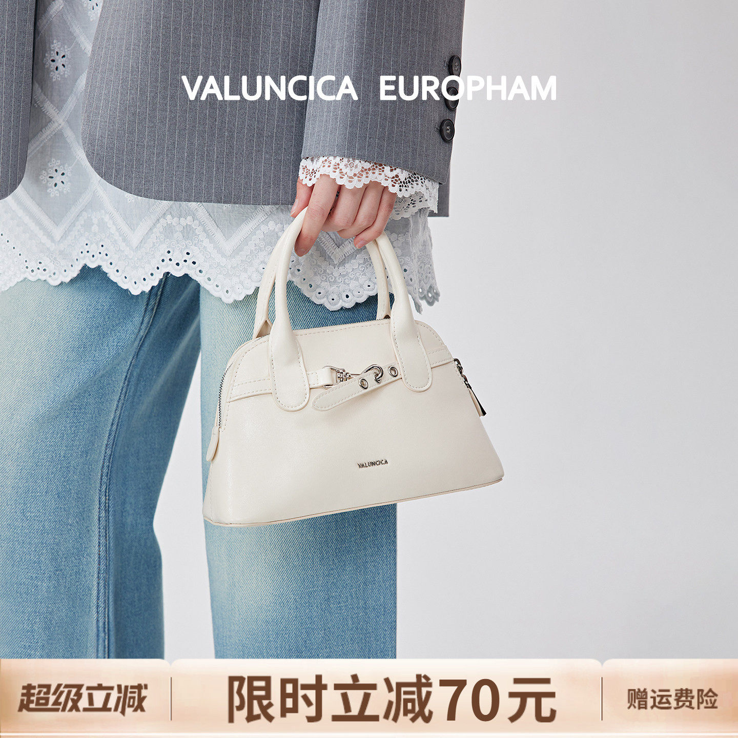 Valuncica/华伦西亚贝壳包新款牛皮斜挎包包女百搭休闲通勤手提包