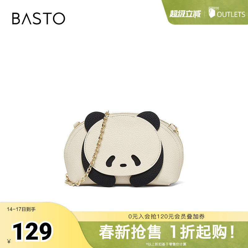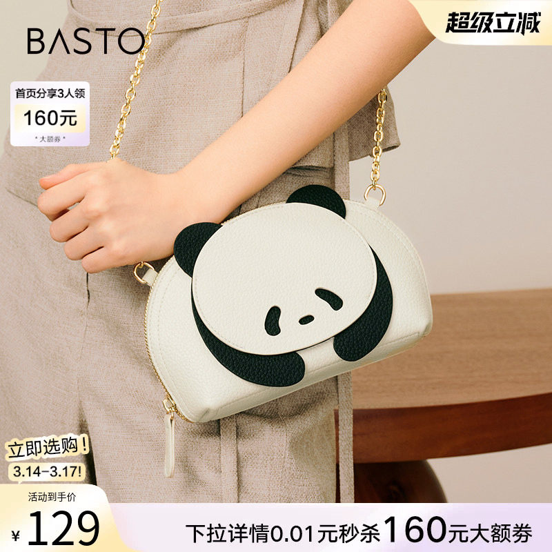 百思图春商场同款时尚迷你熊猫小包包手机包贝壳斜挎包女X3323BX5