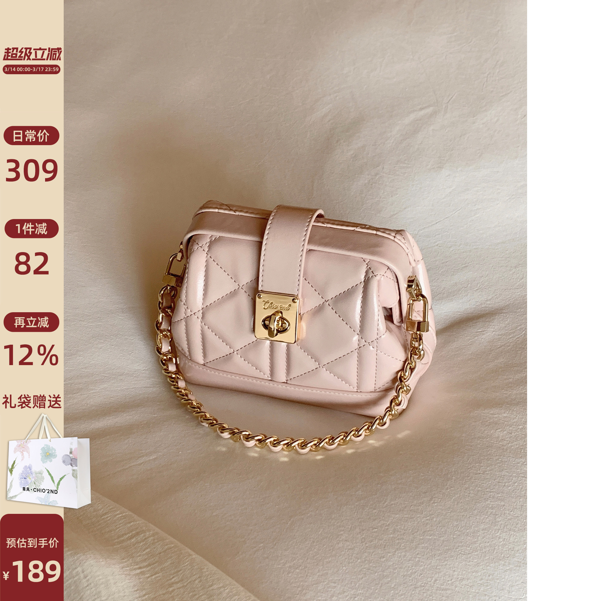 南风Chio2nd 楹园春意贝壳包包女士2026新款粉色菱格单肩斜挎小包