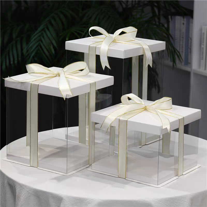 生日蛋糕盒子包装盒6 8 10 12寸全透明单双三层加高方形定制盒子