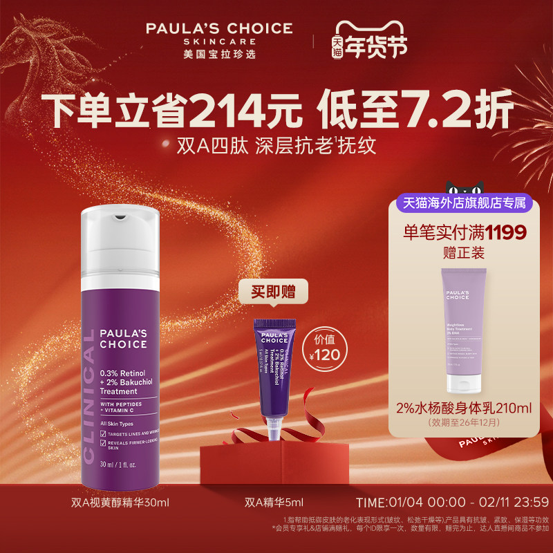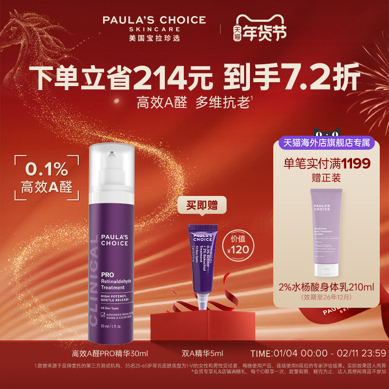 【跨境好物】宝拉珍选新品高效A醛PRO精华抗皱紧致淡纹细毛孔
