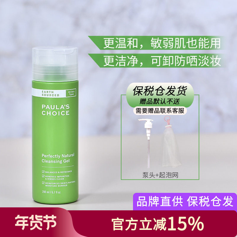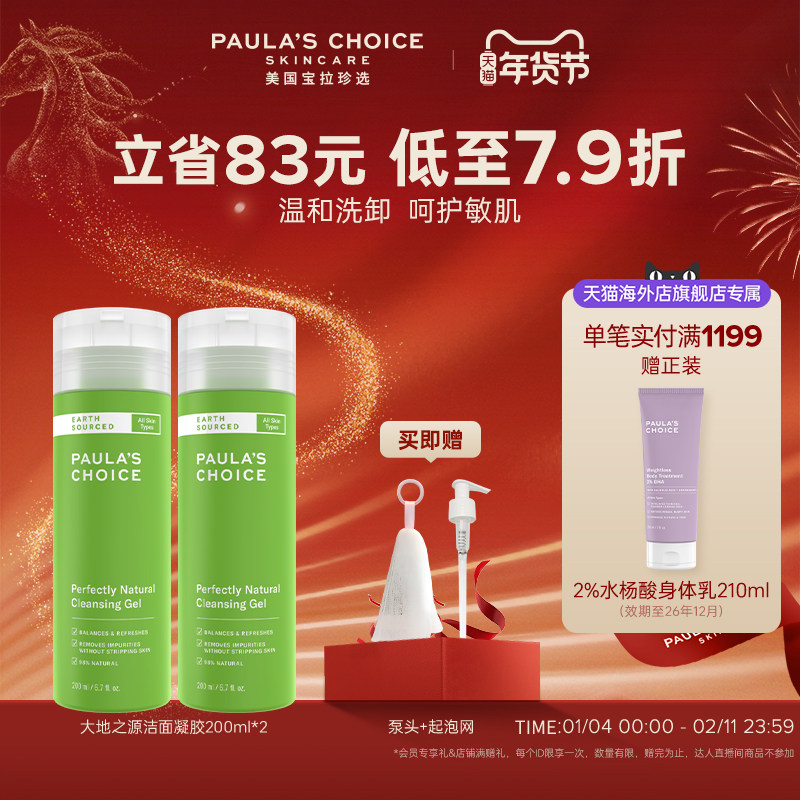 保税直发宝拉珍选大地之源洁面凝胶200ml绿鼻涕APG温和卸妆洗面奶