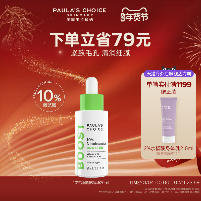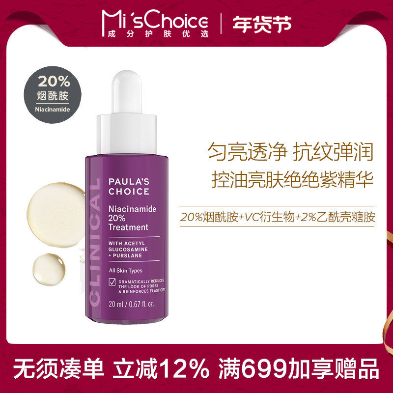 宝拉珍选20%烟酰胺高能修护精华液紧致淡纹抗糖抗氧控油亮肤20ML