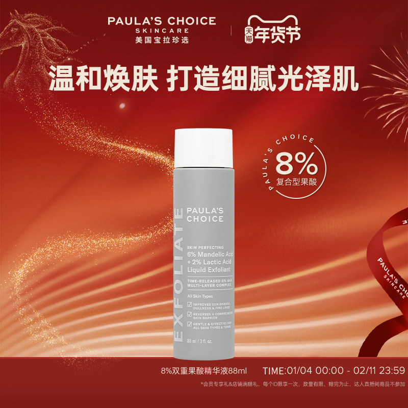 【新品上市】宝拉珍选8%双重果酸精华液紧致毛孔保湿舒缓提亮肤色