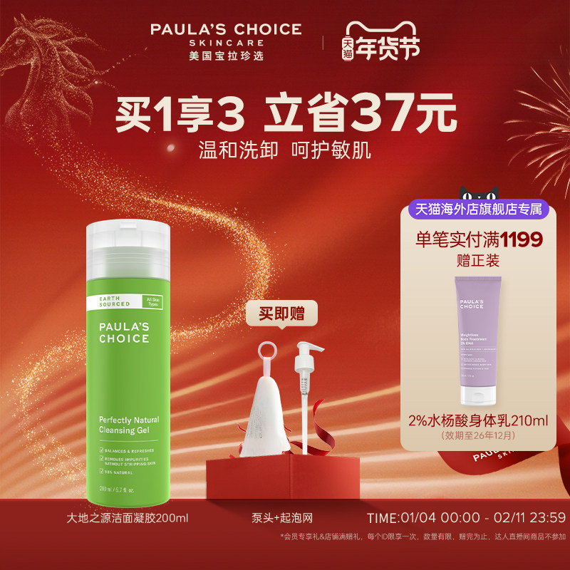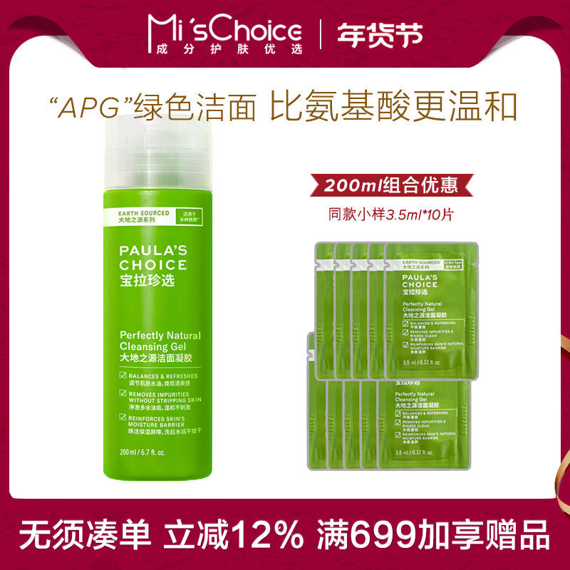 宝拉珍选 大地之源洁面凝胶200ml绿鼻涕卸妆洗面奶 氨基酸APG洁面
