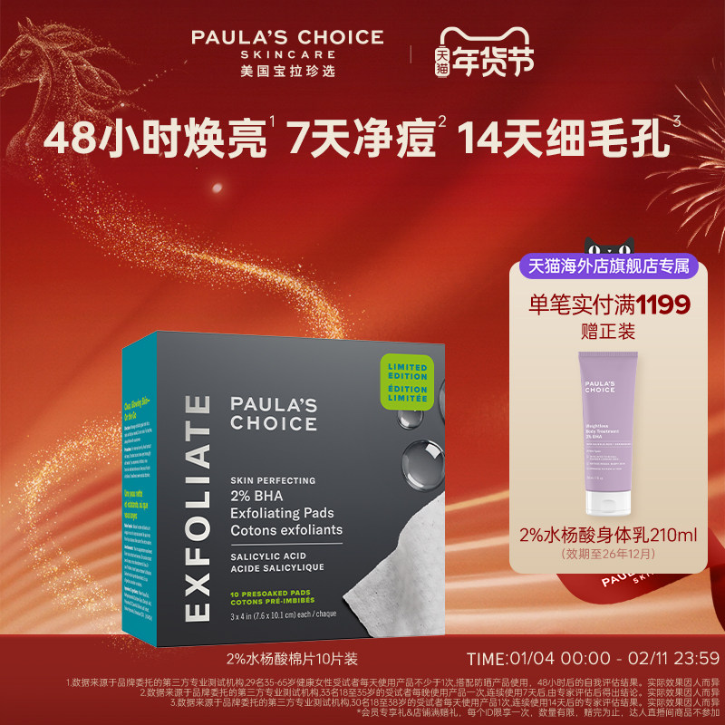 【新品上市】宝拉珍选2%水杨酸棉片旅行装控油祛痘收缩毛孔闭口
