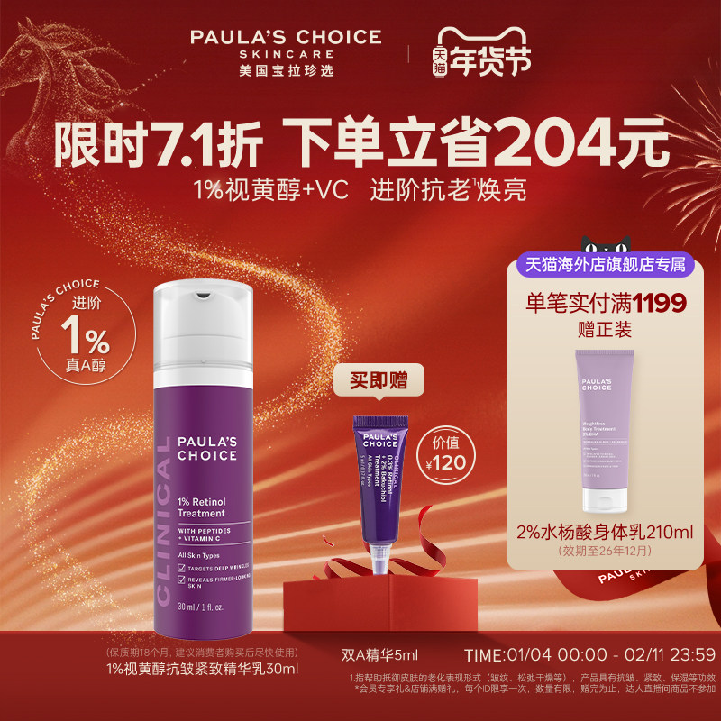正品宝拉珍选1%视黄醇A醇2%补骨脂酚+0.3%视黄醇精华乳紧致