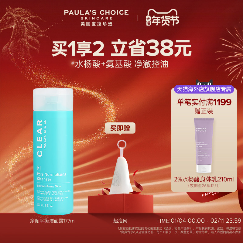 宝拉珍选水杨酸净颜平衡洁面177ml 改善黑头祛痘控油肌男女洗面奶