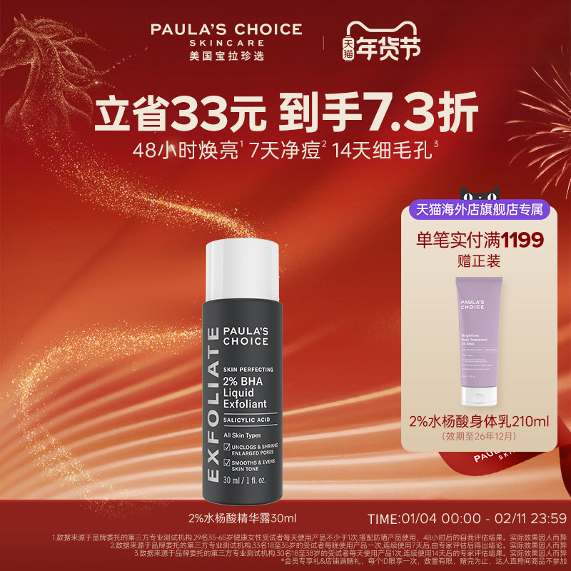 新日期秒发 宝拉珍选2%BHA水杨酸焕采精华液30ml痘痘闭口粉刺黑头