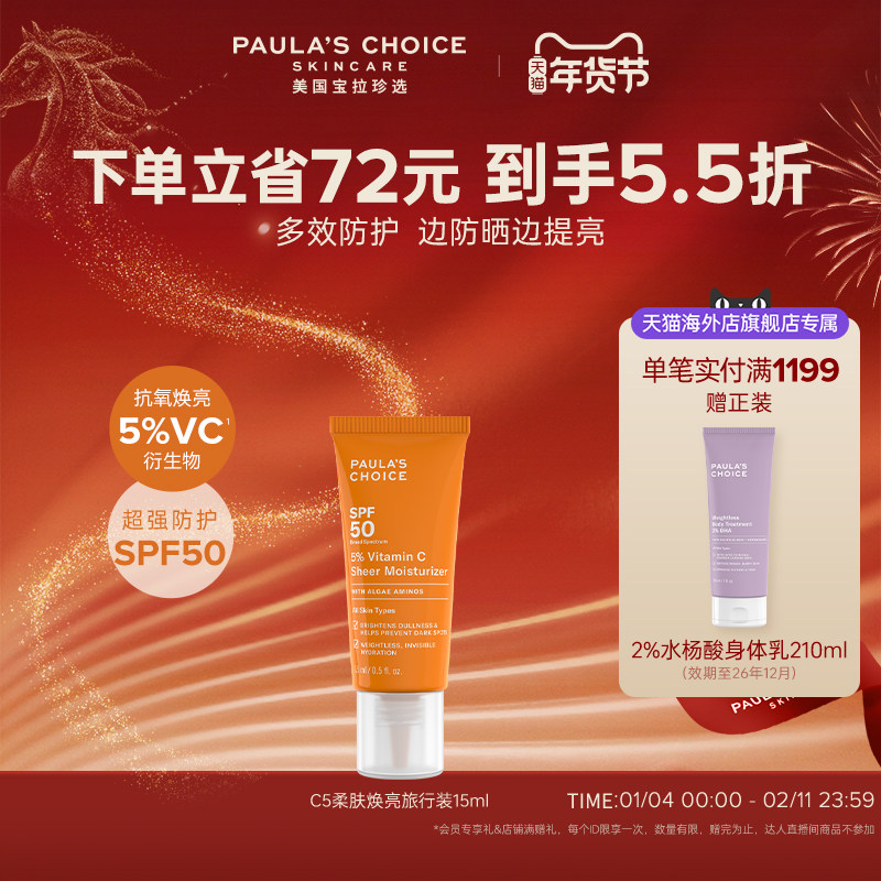 【跨境好物】宝拉珍选C5柔肤焕亮防晒SPF50 15ml保湿抗氧【临期】