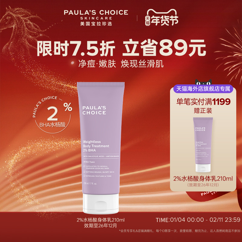 促销 | 宝拉珍选2%水杨酸精华身体乳210ml 改善背痘去角质高渗透