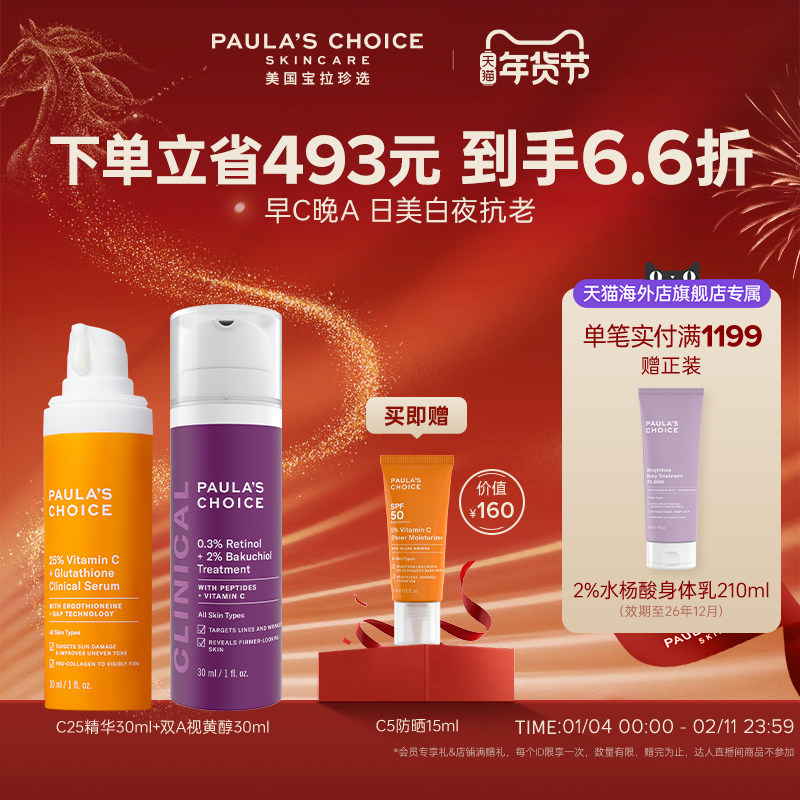 【跨境好物】宝拉珍选早C晚A视黄醇精华+C25淡斑精华美白抗老