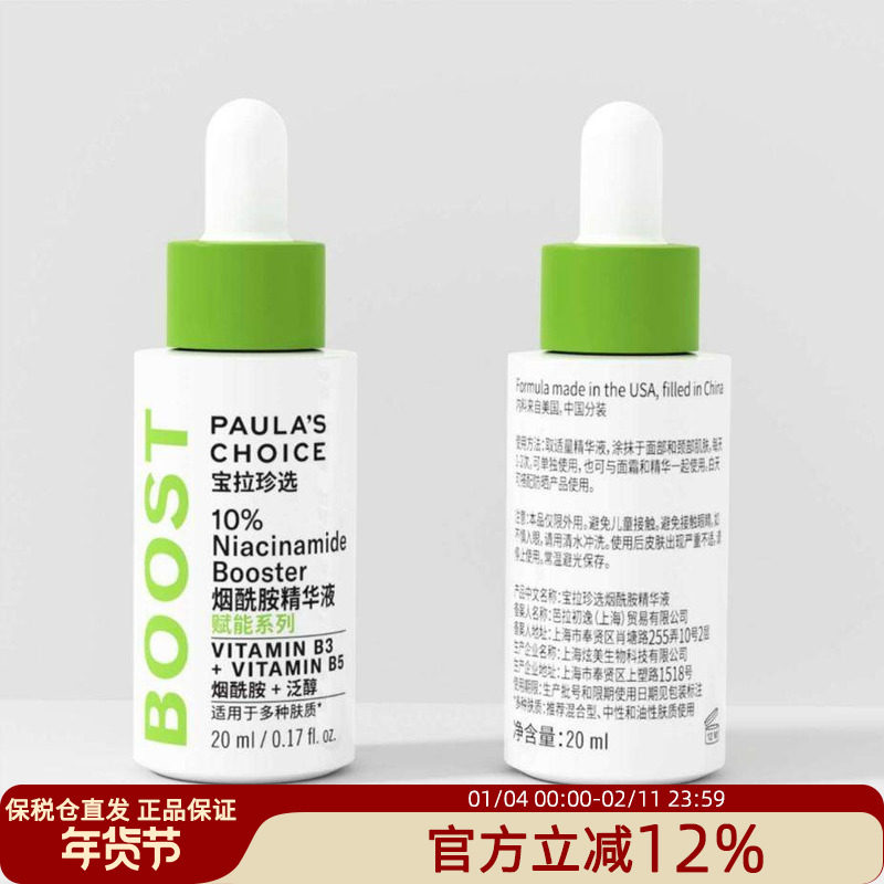 防伪宝拉珍选 10%烟酰胺精华液20ml紧致补水保湿焕亮淡黄皙白控油