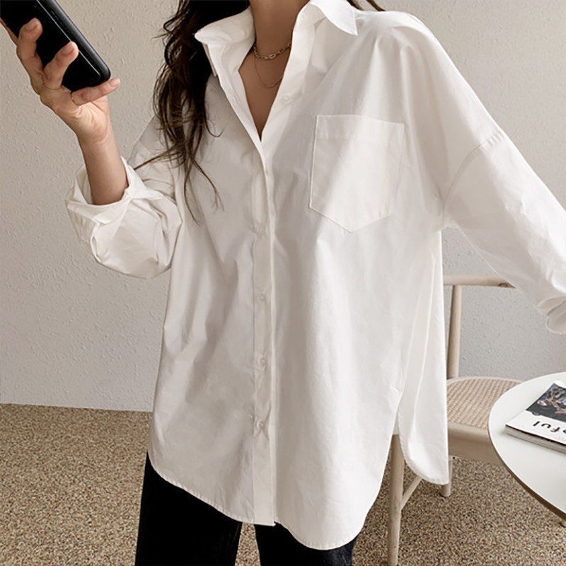 - 白衬衣女 长袖 韩版 宽松 百搭