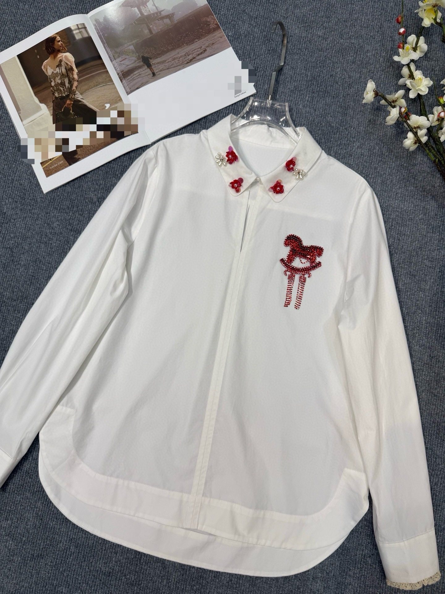 人丝棉纯手工缝亮钻镂空衬衫刺绣衬衫女韩范打底衫文艺宽松上衣女