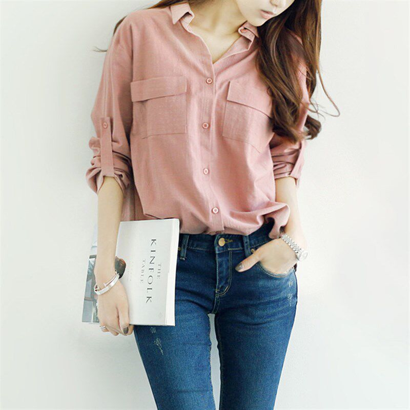 - 亚麻长袖衬衫女