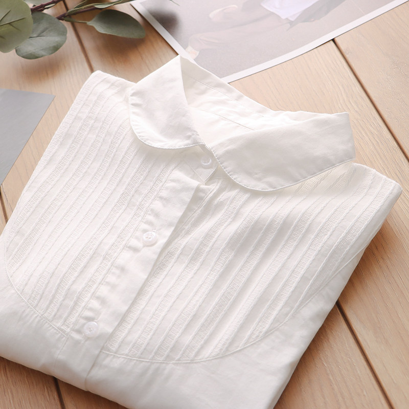 韩范文艺小清新木耳花边娃娃领纯棉白衬衫女长袖通勤打底衫学生潮