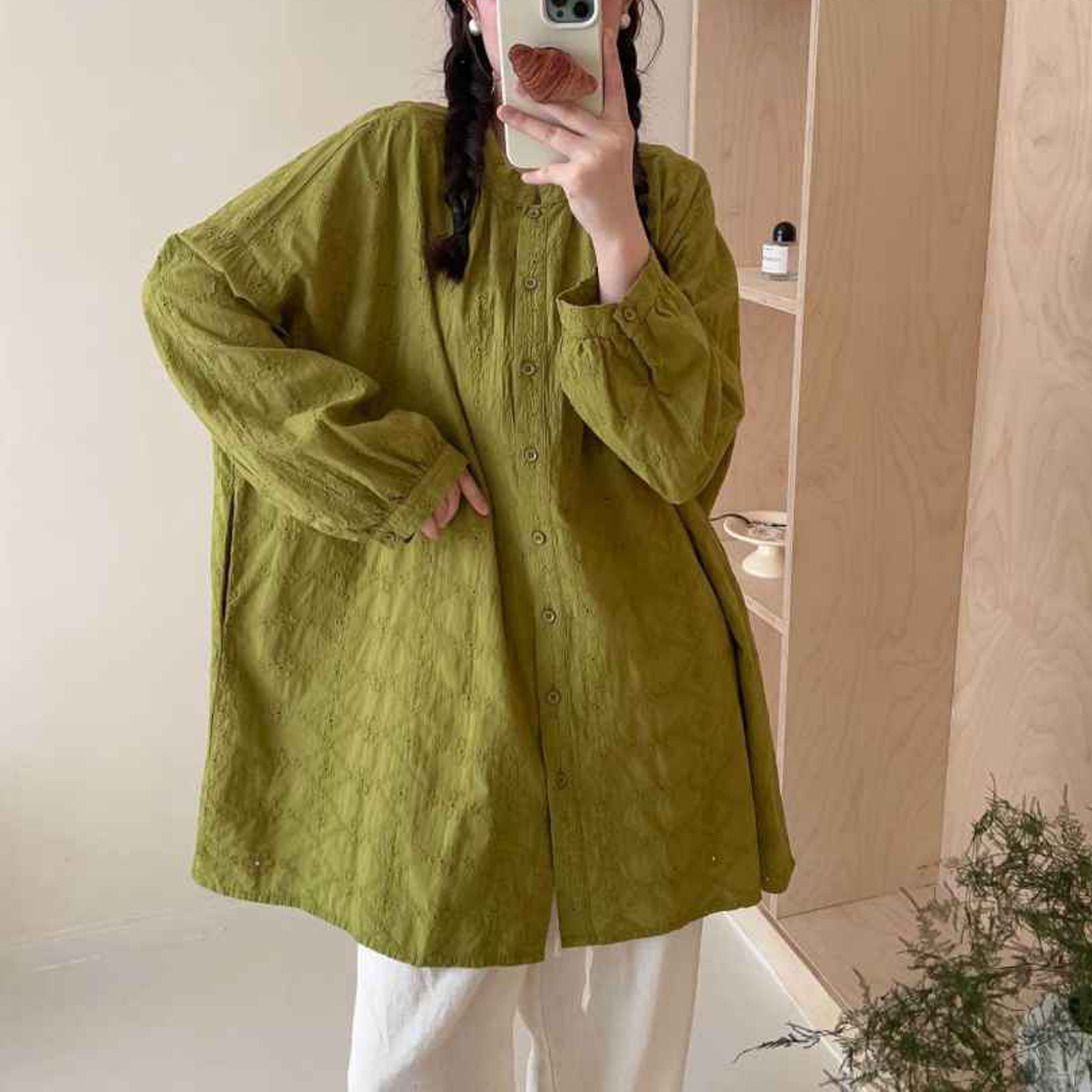 - 衬衫女长袖中长款宽松 外套