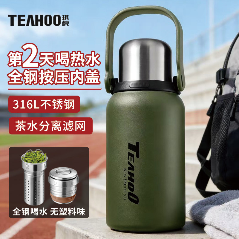 琪虎保温杯全钢男款大容量316不锈钢1000ml学生上学专用军训水壶