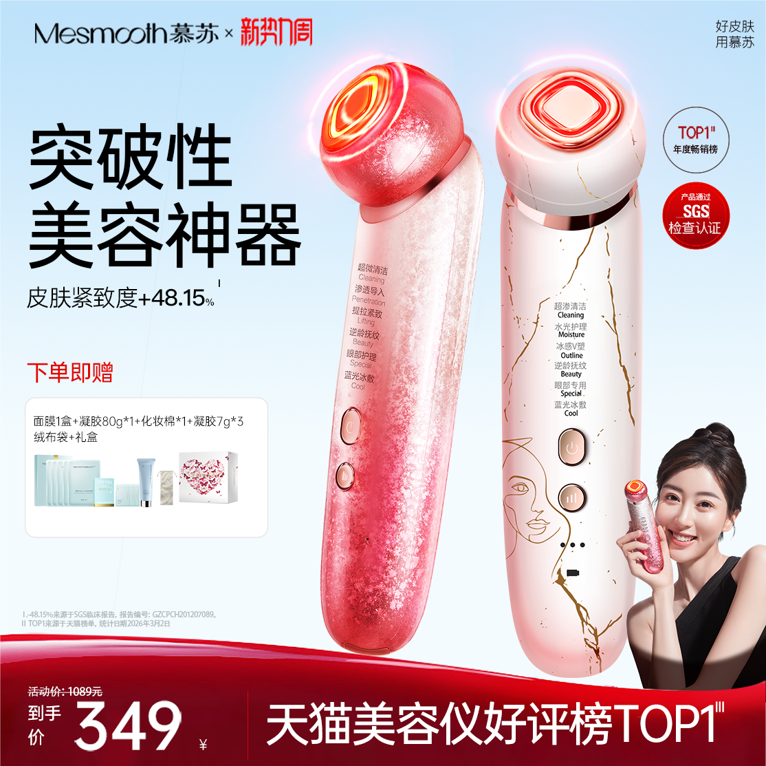 慕苏美容仪家用脸部提拉紧致脸部按摩仪黑头毛孔清洁仪精华导入仪