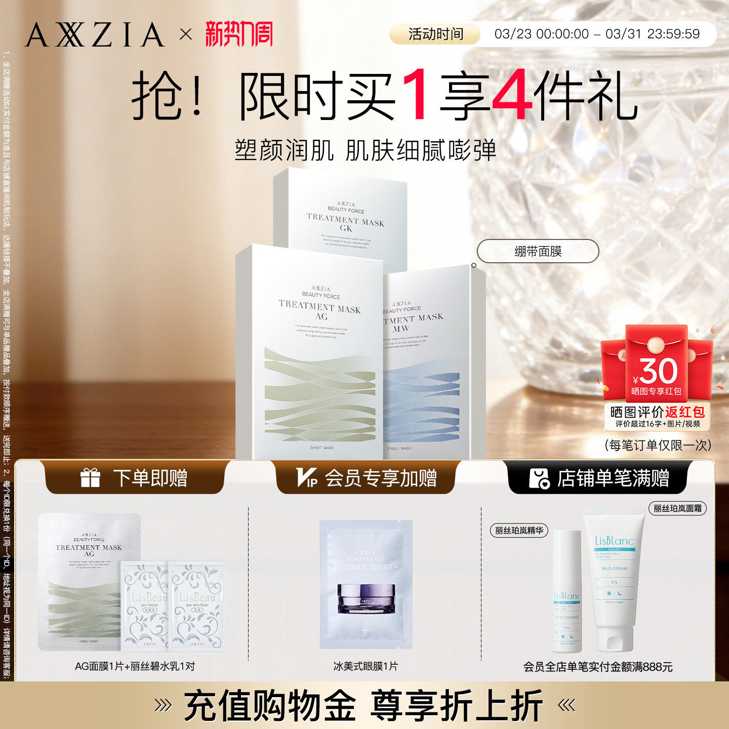 AXXZIA晓姿AG抗糖金绷带面膜淡纹修护补水紧致提拉焕亮抗初老