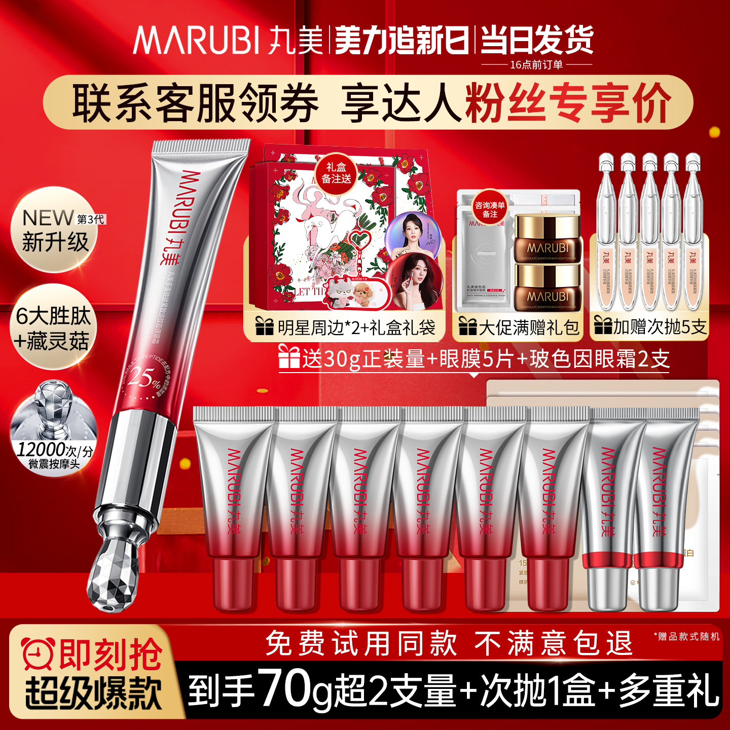 丸美第三代小红笔眼霜抗皱提拉紧致淡化细纹黑眼圈官方旗舰店正品