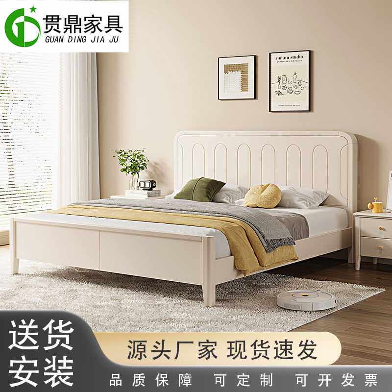 奶油风实木床主卧1.8米现代简约白色双人床1.5米北欧公寓民宿婚床