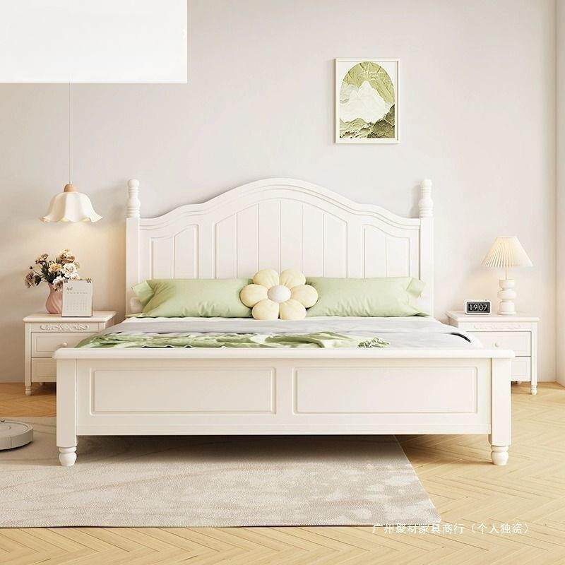 白色美式田园实木床1.8m简约单双人床次卧白色公主床奶油风儿童床